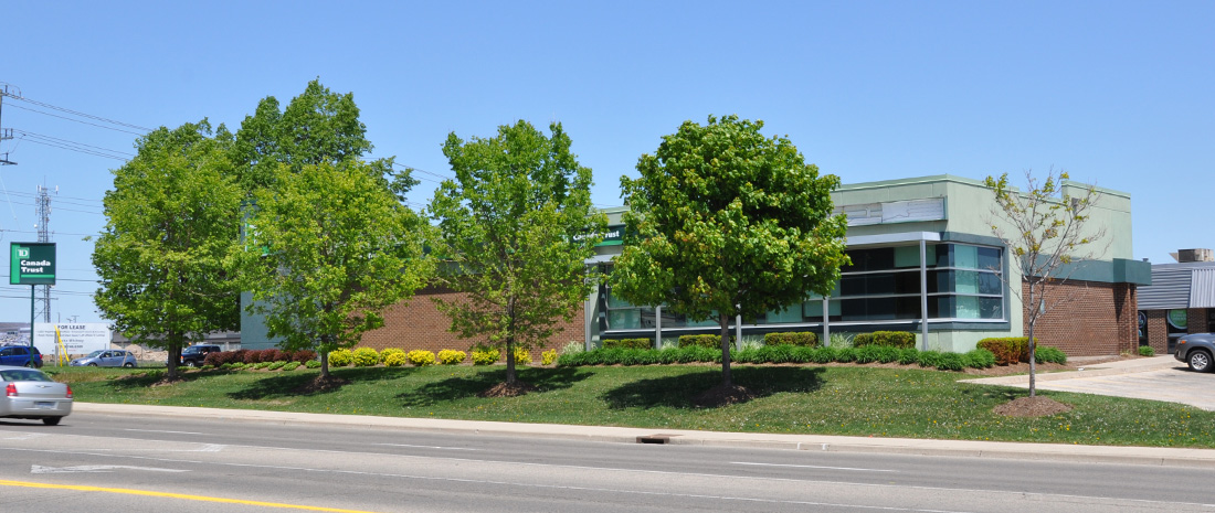 Across the street are two plaza developments offering access to shops, restaurants, a grocery store, a drug store, and a Tim Hortons.